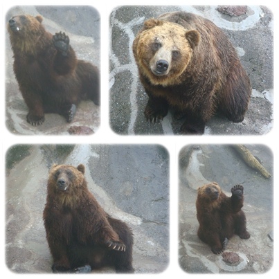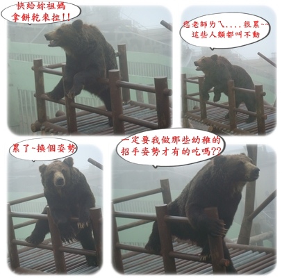 只見熊熊為了要吃餅乾擺出可愛的揮手及拜拜的姿勢